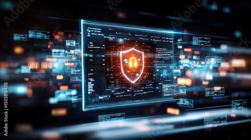 Obraz premium Cybersecurity action in a digital space technology environment with visual...