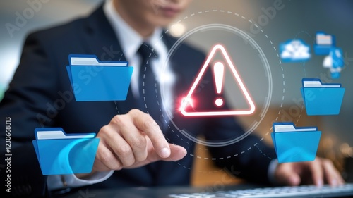 © Media Srock, Naklejka premium Cybersecurity Alert: Data Breach Warning for Files and Cloud Storage