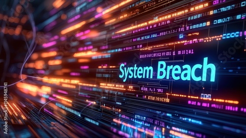 Fototapeta premium Cybersecurity Breach Visualization concept. Digital data flow with "System...