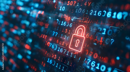 © slonme, Obraz premium Cybersecurity Concept with Digital Padlock and Data Streams