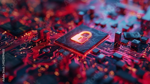 © Jaruwan, Fototapeta premium Cybersecurity Concept with Lock Icon on Circuit Board