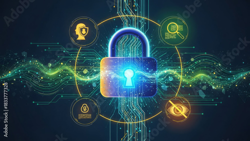Obraz premium cybersecurity, data-privacy protection and secure software interfaces across futuristic