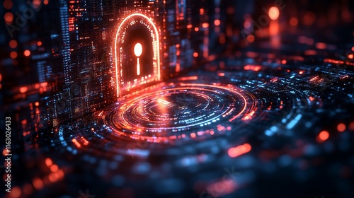 Obraz premium Cybersecurity Digital Gateway: Abstract Futuristic Network Security Concept