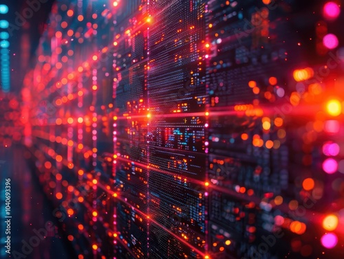 © Nawarit, Obraz premium Cybersecurity firewall, vibrant colors, digital screens, tech setting, modern