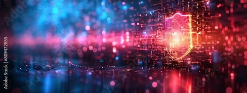 Obraz premium Cybersecurity firewall visualized as a digital shield protecting data, styled as minimalistic