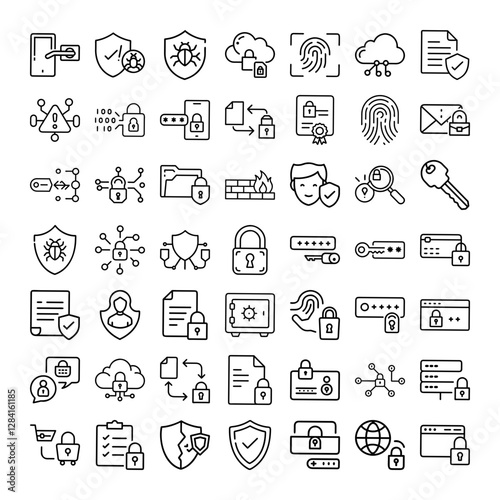 © Bappaditya Roy, Naklejka premium Cybersecurity Icons Data Protection, Privacy, and Network Security