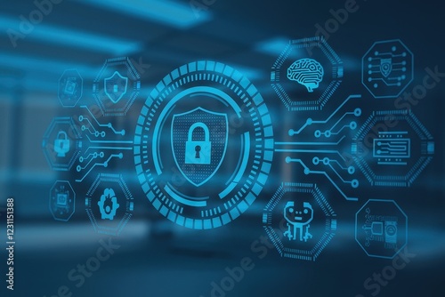 Obraz premium Cybersecurity Network Protection: Digital Shield and Data Security System