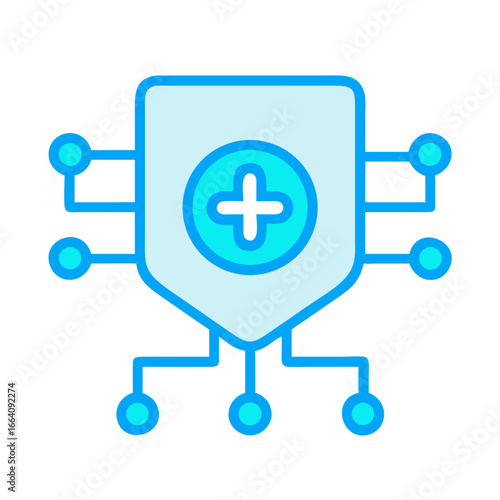© Xihan, Fototapeta premium Cybersecurity shield with network connections and medical plus sign