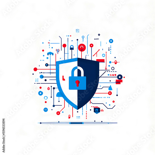 Obraz premium Cybersecurity Shield with Padlock and Security Alert Icons - Data Protection...