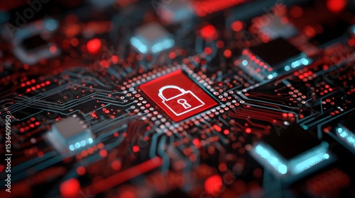 © milkyway, Obraz premium Cybersecurity technology circuit board with security lock symbol