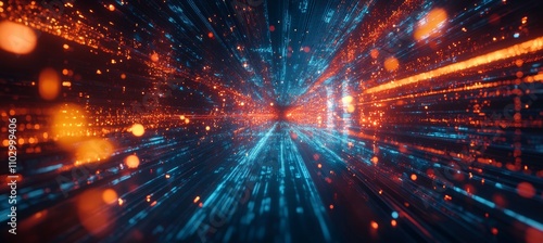 Naklejka premium Cyberspace warp time travel. Light speed teleport. Generative AI technology.