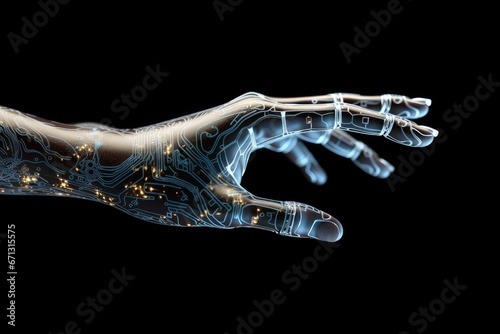 Naklejka premium cyborg human hand with microcircuits. artificial intelligence.