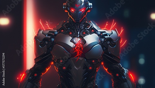 © Artcuboy, Fototapeta premium cyborg red neon light digital art illustration, Generative AI