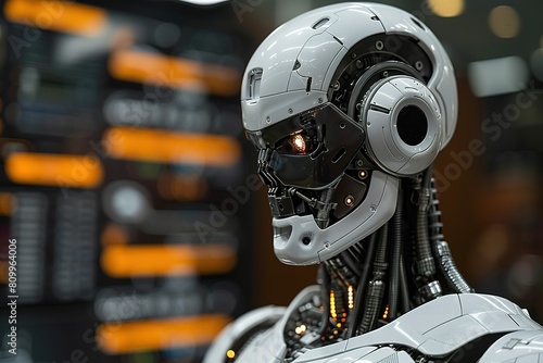 © Rayhanbp, Fototapeta premium cyborg robot machine futuristic technology artificial science computer ai head face white android man intelligent