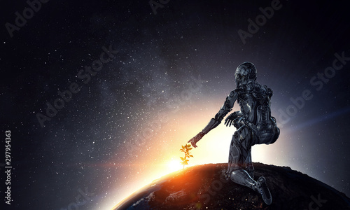 © Sergey Nivens, Fototapeta premium Cyborg woman as concept of creation. Mixed media