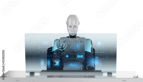 © phonlamaiphoto, Naklejka premium Cyborg work on computer