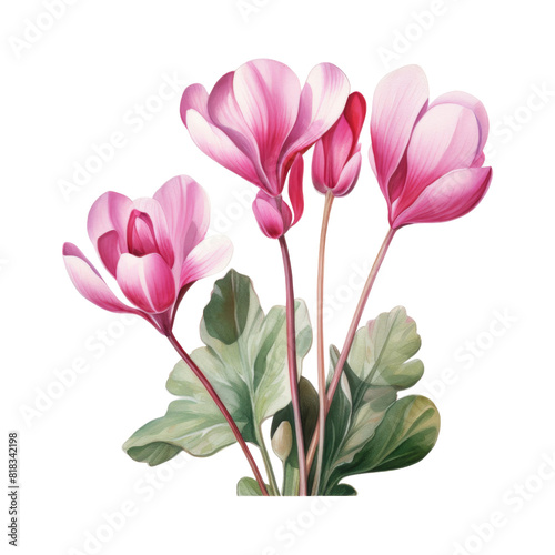 © IMAGINIAC, Naklejka premium Cyclamen, Tropical Flower Illustration. Watercolor Style. AI Generated