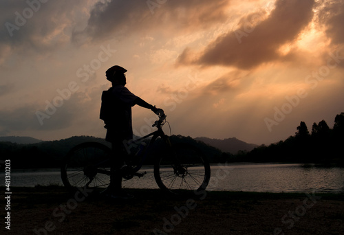 © BigKhem, Obraz premium cycling and sunset