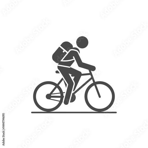 Fototapeta premium Cycling Icon: A stylized icon of a person cycling with a backpack,...