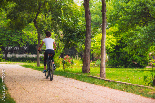 Fototapeta premium Cycling outdoor - Biker girl exercise in the park, woman fitness