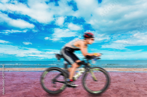 Obraz premium Cycling triathlon at beach
