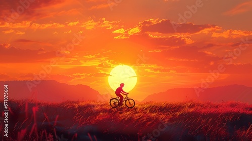 © Francheska, Fototapeta premium cyclist at sunset generative ai