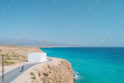 © Ryzhkov, Obraz premium Cyclist Enjoying Serene Coastal Ride on Winding Cliffside Road