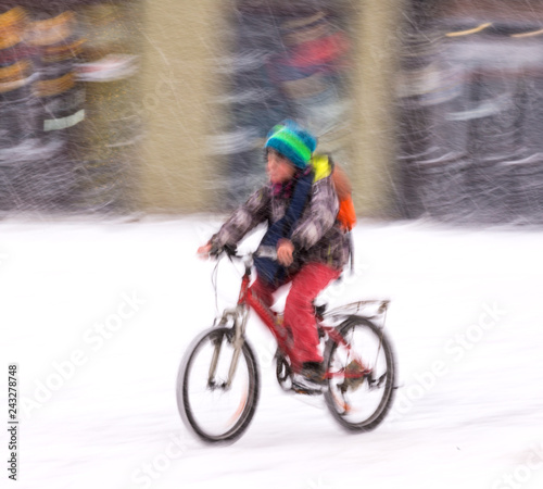 Fototapeta premium Cyclist on the city roadway in motion blur