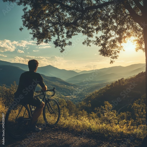 © Togrul, Obraz premium Cyclist pauses to enjoy the view.