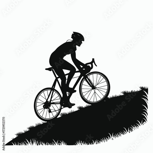 © Monira, Fototapeta premium Cyclist riding at sunset silhouette