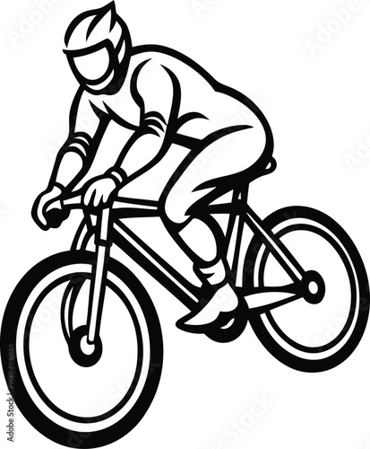 Fototapeta premium Cyclist riding bicycle line art vector illustration, Cyclist riding bicycle silhouette vector art, Cyclist riding bicycle vector