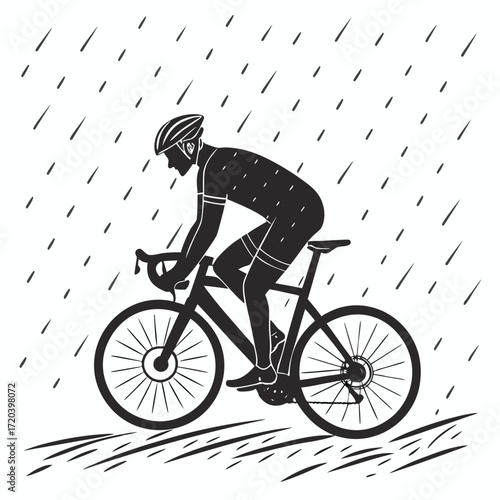 © Monira, Fototapeta premium Cyclist riding through rain silhouette