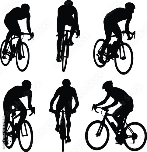 Obraz premium Cyclist silhouette set, road bike posture, active riding poses, sports motion...