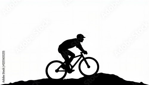 Obraz premium Cyclist silhouetted against white background, adventure and freedom