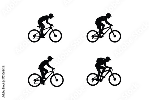 © Yeasin, Fototapeta premium Cyclists riding bicycles in silhouette black