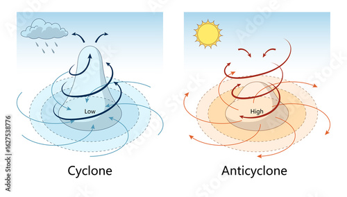 Fototapeta premium cyclone and anticyclone systems, showing airflow patterns, pressure zones,...