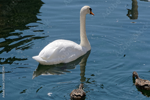 © galaad973, Obraz premium Cygne tuberculé accompagné de canards