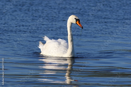 Fototapeta premium Cygnus olor. Mute Swan closeup on the water in Siberia