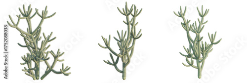 Naklejka premium Cylindropuntia spinosior tree plan, top view, cutout, transparent background, isolate, Unique branching desert succulent plant with fuzzy texture