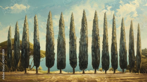 © Kultivad, Fototapeta premium Cypress Trees in a Grove Landscape
