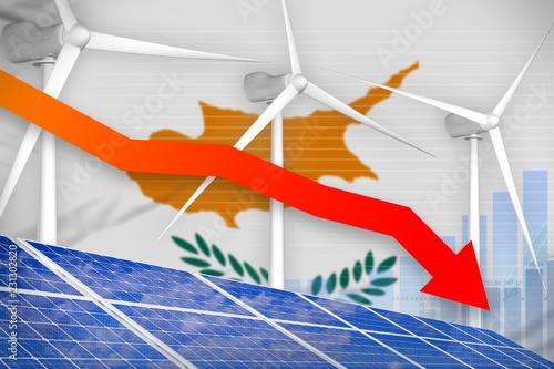 Fototapeta premium Cyprus solar and wind energy lowering chart, arrow down - alternative natural...