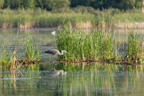 Fototapeta premium Czapla siwa poluje na ryby