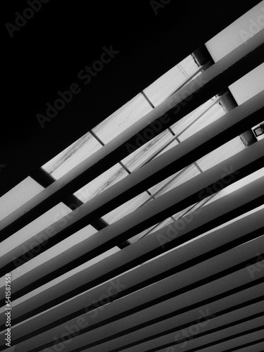© Pulasthi Keragala, Naklejka premium czarno-biały wzór tekstury betonowych filarów i świetlika
