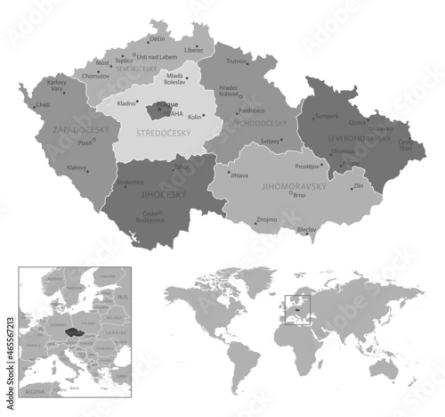 © gt29, Fototapeta premium Czech Republic - highly detailed black and white map.