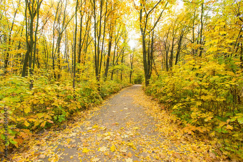 Obraz premium Czerwone i kolorowe kolory jesieni w lesie