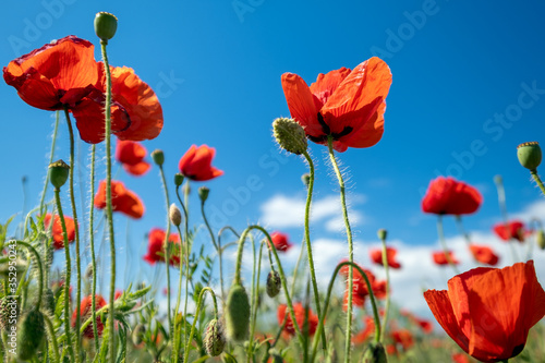 © Kokhanchikov, Obraz premium Czerwone kwiaty maku i błękitne niebo