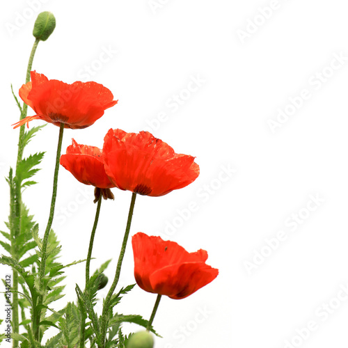 © Kellis, Obraz premium Czerwone maki na białym tle