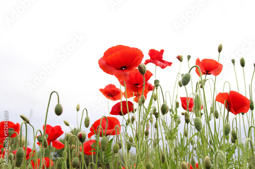 Obraz premium Czerwone maki w letnim ogrodzie.