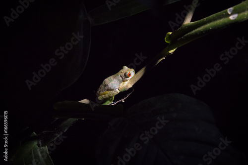 © Tiago Fernandez, Fototapeta premium Czerwonooka żaba na gałęzi w nocy w lesie chmur Monteverde w Kostaryce