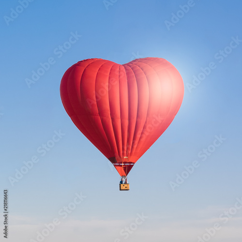 Fototapeta premium Czerwony balon w kształcie serca na białym tle na niebie